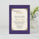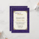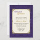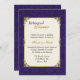 Härlig personligt bröllprepetition middaginbjudan som göras i en rik purpurfärgad damastast bakgrund. Eleganta diagram av en goldtone vintage tittar ram omger ett kräm- kulört textområde. Text i guld- brunt, lilor och svart är klar att personifiera för din speciella dag.