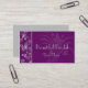 Denna visitkortdesign är säker att tilldra uppmärksamhet och hjälpa dig att stå ut i folkmassan. Bakgrunden är purpurfärgad, och det finns ett härligt blom- grafiskt i silver som ger det en elegant look. Perfekten för någon affär men speciellt utmärkt för brud- salong och att gifta sig att planera, att planera för händelse, att sköta om, nagelsalongen, brunnsorten, smycken, cosmetologisten, mode, skönhetkonsulenten eller någon tid skulle du likt ett elegantt handlag. Tillfoga din information, och det är klart att gå!