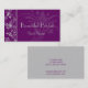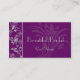 Denna visitkortdesign är säker att tilldra uppmärksamhet och hjälpa dig att stå ut i folkmassan. Bakgrunden är purpurfärgad, och det finns ett härligt blom- grafiskt i silver som ger det en elegant look. Perfekten för någon affär men speciellt utmärkt för brud- salong och att gifta sig att planera, att planera för händelse, att sköta om, nagelsalongen, brunnsorten, smycken, cosmetologisten, mode, skönhetkonsulenten eller någon tid skulle du likt ett elegantt handlag. Tillfoga din information, och det är klart att gå!