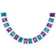 Ett enkelt meddelande för lila- och turkosgrattis på födelsedagentext planlägger. Detta baner matchar den stora feta katten i stol som det roliga hälsningkortet i mitt shoppar.