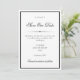 Meddela din speciella dag med stil med detta eleganta svart-vita "spara datum"-kort. Med en tidlös svart-vit design med graciös typografi på framsidan och ett personligt parfoto på baksidan är detta kort det perfekta sättet att dela din glädje med dina nära och kära. Helt anpassningsbart kan du lägga till datum för er vigsel, era namn och ett älskat foto som speglar er kärlekshistoria. Den minimalistiska designen säkerställer att detta kort passar till vilket bröllopstema som helst och ger en sofistikerad och hjärtlig touch.