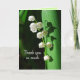 Den känsliga skönheten i dalen är ett vackert sätt att tacka. Lätten i dalen är den förlossningsblomman i maj, men detta kort är perfekt när som helst på året! Kate Middleton, som nu är hertiginnan av Cambirdge, valde en bröllop-bouquet som till största delen består av en dal som på blommornas språk representerar "lyckans återkomst" och "pålitlig". "Blomens språk" är en blommigt som blivit populär av drottning Victoria. Lätten i dalen är drottning Elizabeth II:s favoritblomma. Här är ett bröllop-relaterat kort i samma stil.