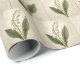 A delicate lily of the valley stands gracefully against a textured backdrop, the white flowers and green leaves forming a serene and elegant composition