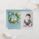 En delikat blommigt med vattenfärg arrangemang med liljet av dalen blommor och stjälkar, där man med foto visar guld (digital, inte riktig folie) kor är de elegant dekorationerna för denna enkla, klassliga baptisminbjudan från baby och småbarn, som du kan anpassa och ändra helt. En snyggt- och klassinbjudan till en pojke baby eller småbarn eller Christening.