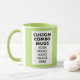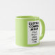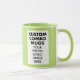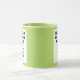 LIME GREEN 4:6 portrait aspect ratio double image frame custom Combo Mug for photo or logo, 11 oz., 3.2" diameter x 3.8" high, with LIME GREEN background double image frame (two individually customizable design areas) providing maximum coverage of the mug in LIME GREEN. See store for more templated font options. The background color has been chosen to closely resemble the combo mug inside and handle color but may not match exactly, due to the difference between printing and enamel tones.