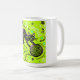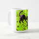 This neon green cat mug features a playful hand-drawn black kitty chasing a ball of yarn on a bright electric-green background, ideal for cat lovers who enjoy bold, artistic designs. With its energetic doodle style and vivid colors, it adds fun, whimsical feline energy to every coffee or tea break.
