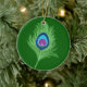 Lime och Blue Peacock Feather på Emerald Grönt Julgransprydnad Keramik