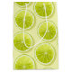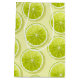 Ett mönster av färska och saftiga kalkskivor i klara, levande blad av kalkgrönt, med en vattenfärg struktur till ge som nyklippt utseende. De placeras på en ljus gult-/grönt-bakgrund för ett ljus- och summeristiskt utseende.