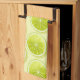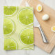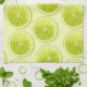 Ett mönster av färska och saftiga kalkskivor i klara, levande blad av kalkgrönt, med en vattenfärg struktur till ge som nyklippt utseende. De placeras på en ljus gult-/grönt-bakgrund för ett ljus- och summeristiskt utseende.
