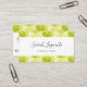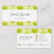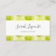 Ett mönster av färska och saftiga kalkskivor i klara, levande blad av kalkgrönt, med en vattenfärg struktur till ge som nyklippt utseende. De placeras på en ljus gult-/grönt-bakgrund för ett ljus- och summeristiskt utseende. Utformningen upprepas på baksidan av kortet. Framsidan har ett kursivt skriptteckensnitt för anpassadet i svartvitt och ett ställe där du kan lägga till din jobbtitel. Kortet fungerar bra för alla professioneller - från konsulter, till dekoratörer i hemmet och mediaexperter i social. Baksidan har medieikoner från social och kontaktikoner i guld-folie struktur, och de är alla anpassade och kan flyttat runt. Det här affärskortet är en elegant och ett modernt sätt att ditt yrke med potentiella kunder!