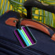 Färgrikt randmönster med lilor, krickablått, limefruktgrönt och svart