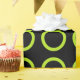 Abstrakt konst av ror av limefruktgrönt cirklar mot en svart bakgrund.