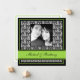 Så vacker och chic dessa limegröna damaskfotografier annonserar din förlovning med en klassisk och traditionell stil. Tung fyrkantig kartong inger modern sofistikation. Ersätt foto och text med dina egna detaljer och du har skapat en unik anpassad annons och minnessaker. © 2010 Sublime Stationery All Rights Reserved