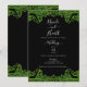 Limegrön glittrande spets svart bröllop inbjudningar