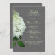 Mörk grått, storblomsterduschinbjudan är perfekt för en vår eller sommarbrud. En stor vit, realistisk hydrangea som kallas " Limelight " gräns på lämnat framsida. Anpassa den mycket ljust grönt texten till party, inklusive register och OSA.