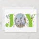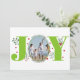 Lime green Joy med bär julfotokort för Helgdag. Den visar ord "JOY" med röda bär och grön vind medan brev "O" där är ditt foto. Baksidan innehåller rött polka dots.