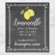 Krita tavla med handritade gula citroner. Limoncello hög flasketikett. Personlig modern typsnitt med finurlig svängd ram. Anpassa alla teckensnitt och text. Handgjord av dig. Beställ extra för sista minuten-gåvor. Hemmagjord italiensk Limoncello är en underbar gåva till gäster på bröllop. För att se hela sortimentet av Limoncello-produkter, besök "The Hungarican Princess - A Boutique™" @zazzle.com/hungaricanprincess. Titta i vår "Limoncello-avdelning". Tips: Små vattentäta flasketiketter finns i denna stil.