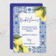 Limoncello inbjudningskort för möhippa i gult och blått.