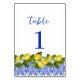 Limone I Italienska citron- och blåa kakelnummerpl Bordsnummer