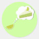 Ett leende limeskiktstecken som tänker på nyckel lime paj
