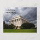 From a lush, green hillside, the Lincoln Memorial rises majestically, framed by surrounding trees. This summer vista encapsulates the strength and serenity of the monument, even as a dark, stormy sky looms overhead, adding a dramatic contrast to its timeless grandeur.