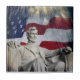 Foto på Abraham Lincolns staty på Lincoln Memorial i Washington DC med vackra exploderande fyrverkerier och USA:s flagga i bakgrunden. Underbar sammansatt bild för amerikanska patriotiska helgdagar firande.