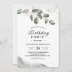En Eukalyptus-utomhusinbjudan är en vackert utformad inbjudan som är perfekt för alla utomhusaktiviteter eller sammankomster. Inbjudan har vanligtvis en elegant och rustik design, med frodiga gröna eukalyptusblad som huvudsaklig fokuspunkt. Bladen fungerar ofta som en naturlig ram eller kant för inbjudans text och grafik, vilket skapar ett sofistikerat och inbjudande utseende.