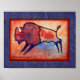 Linda Baysinger Pecks vattenfärgsmålning av en stiliserad buffel, eller bison. Hitta det gömt ansikte. Blue faux denim gräns.Image © Linda Baysinger Peck Med reserverade Höger
