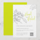 Modern enkel skissad bröllopsinbjudan i grått på vitt med en touch av limegrönt
