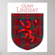 Lindsay Scottish tartan plaid mönster-konstruktionen för Lindsay Klan Family under den röda Lejona Rampant Shield of Scotland.