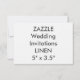 Anpassningsbar Personlig LINEN-bröllopsinbjudningar - 5" x 3,5". En enastående elegant papper för det traditionella bröllop och särskilda tillfällen. Det vackra struktur i präglat linne skapar ett subtilt intryck som inte kommer i tid. 100 lb, 12,5 punkters tjockt kort. GJORD I USA. Stora massinköp av rabatter för flera inköp på inbjudningskort, upp till 50 % av dina köp för artikelorder i många. Zazzle-bröllopsinbjudningar - Skapa, skapa, utforma ditt eget personligt bröllp inbjudan från det här anpassadet, personlig Zazzle-inbjudningskortet är tomt. Utskriftsalternativ av hög kvalitet, fullt-färg, fullt-utfall på båda sidor med Standard- eller HIGH-DEFINITION. Storleka alternativ: 5 tum x 7 tum, 4,25 tum x 5,5 tum, 3,5 tum x 5 tum, 4 tum x 9,25 tum, 5,25 tum x 5,25 tum, 4,5 tum x 6,25 tum, 5,5 tum x 7,5 tum, 6,5 tum x 8,75 tum. Orienteringsalternativ: Lodrät (porträtt) eller vågrät (liggande). Avsluta alternativ: Halvglans, Matte, Ultratunn, Laid, Linen, Columned, Felt White, Felt Ecru, Kraft, Pearl Shimmer, Champagne Shimmer & Metallic Silver. Kortform och alternativ för Stil: Standard- eller rundade hörn (alla storlekar), Intervall, Upphäftning, Biljett eller Märkre (endast 5 tum x 7 tum), Cirkulär (endast 5,25 tum). Standardkuvert medföljer, med uppgraderingsalternativ. Perfekt för bröllopsinbjudningar, bachelorette, möhippa, repetitionsmiddag, spara datum osv. och för alla inbjudningar från OSA, t.ex. årsdag, födelsedag, sweet sixteen och Quincenera, eller för företagsevenemang och utställningsinbjudan - för foto, bild, text, brud & groom, eller för att skapa en egen unik personlig.