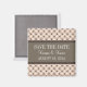 Trendig och chic Finare Lattice Spara datum magneter med en snyggt och en diamant som studerade mönster över en vibrerande persikobakgrund med en bred brunn gräns med två toningar. I elegant är spara datum magneter perfekt för att tillkännage ert moderna bröllop. Enkel att anpassa, lägg bara till din bröllop-information i den text fält tillhandahåller. Klicka på Anpassa om du vill söka efter fler anpassningsalternativ.