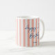 Fira en speciell födelsedag med ett eget namn kaffe mugg! Den här chicen har trendig-skripttypografi och ett enkelt strimlat mönster med faux linen-utseende. Anpassa mallen med namn och ålder - perfekt för födelsedagar för milstolpe inklusive 18:e, 21:e, 30:e, 40:e, 50:e, 60:e, 70:e, 80:e, 90:e och 100:e! Den här eleganten blandar tidlös stil med en modern tvist, och texten kan lätt anpassas efter årsdagar, helgdagar eller särskilda händelser. Tryckt färg: mörk blått, marin, naturlig korallets rosa och vit.
