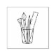 En uppsättning konst och hantverk: två målarpenslar, en penna och en linjal i en glashållare. Perfekt för konstnärer, illustratörer, lärare och hantverkare.