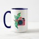 Rosa vintagekamera med grön lövverk kaffekopp. Le!
