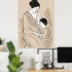 En mors kärlek är som de milda fallande körsbärsblommorna – tyst men djupt rörande. Denna minimalistiska japanska konst om moderskap fångar den tysta styrkan och ömheten hos en mor som vaggar sitt barn. Inspirerad av traditionellt Sumi-e-penseldrag frammanar de känsliga linjerna och mjuka tonerna en känsla av Zen-lugn och djup känslomässig förbindelse. Ett tidlöst konstverk för dem som värdesätter enkelhetens skönhet och moders kärleks kraft.