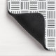 Den här musmattan har en modernt utformning i mitten av århundradet av fem svarta linjer, omväxlande vågrät och lodrät, som upprepas över hela mönstret på en vit bakgrund. Om du tycker om designen men vill ha ett annat färg, säg mig.