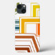 Den här telefonväskan har en konsthandledning av linjer i grönt, gult, brun, orange och blått.