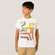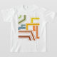 Den här t-shirt-barnen har en konsthantdesign av linjer i grönt, gult, brun, orange och blått.