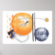 Moderna vattenfärgsformer och prickar med orange, gult och marint blått färg och svarta linjer som ritas ut. Väggkonst som är Perfekt för det moderna hemmet eller kontoret! Andra poster tillgängliga som matchar det här temat.
