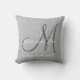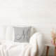 Beställnings- monogrambröllop kudder utskrivavet på bakgrund för fauxgrå färglinne.