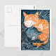 Linocut Svart och Röd Katt som Kramas i en Buske Vykort