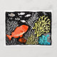 Linocut Red Fish Swimming in Coral Reef Vykort