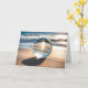 Glasobjektiv boll på en sandstrand med havstrandreflexion för födelsedag. Text kan ändras.