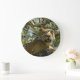 Lioness tittar från Träd vid nästa måltid och gick på marken under henne på en klocka. med svarta siffror mellan 1 och 12