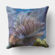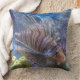 Den vackra leonfisken på denna 20-tums Dekorativ kudde simmar i ett färglöst vattenakvarium. Det är ett originalfoto av ZoeSPEAK som visar mönster på tjocka och tunna fenor av rand och finare på denna ovanliga tittar fisk. Det är ett färgfoto med tropiska blått, gult och rosa av akvariet och fiskens rosa av lax.