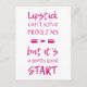 Den här designen innehåller den söta makeup-relaterade frasen "Lipstick kan inte lösa problem men det är en Söt Bra Start".