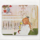 Lisbeth med en gul tulpan musmatta