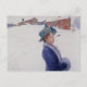 Vintage snö med konstnärens dotter som bär sin nya hatt och muff. Svenska konstnären Carl Larsson.