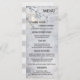 En festlig meny (bröllop) med ett ljus med tänt ljus i mousserande snö. På baksidan har du flera alternativ: Du kan välja mellan en randad bakgrund, en lanternbild längst fram eller en anpassningsbar färg. Du kan också byta ut någon av dessa bilder mot ett eget foto om du vill.